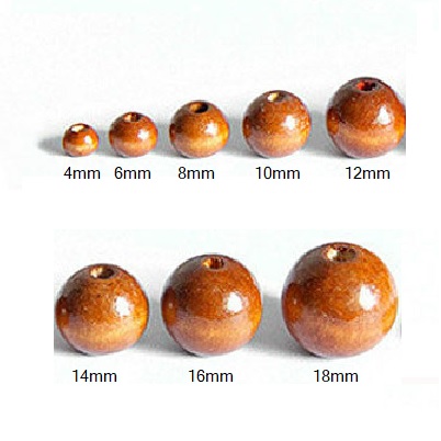Abalorios redondos de madera de color natural para la fabricación de collares y pulseras.