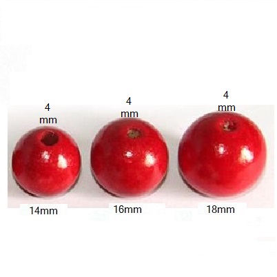 Abalorios redondos de madera en color rojo para la fabricación de collares y pulseras.