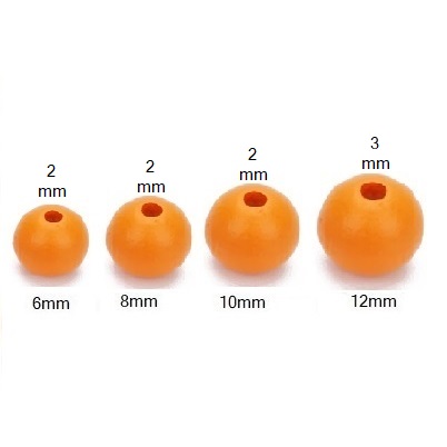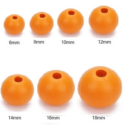 Abalorios redondos de madera en color naranja para la fabricación de collares y pulseras.