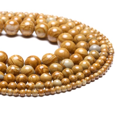 Abalorio de piedra natural color marrón  con distintos diámetros para la fabricación de pulseras y collares.