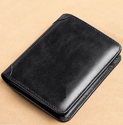 Billetera de cuero plegable para hombre. Con porta tarjetas y compartimento interior. Color negro.