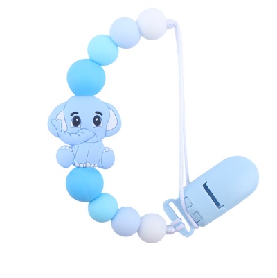 Cadena sujeta chupete para bebé. Cuentas de silicona de grado alimenticio, cadena de dentición anticaída para recién nacido. Cadena de color azul con figura de elefante. Esta cadena no se puede personalizar.