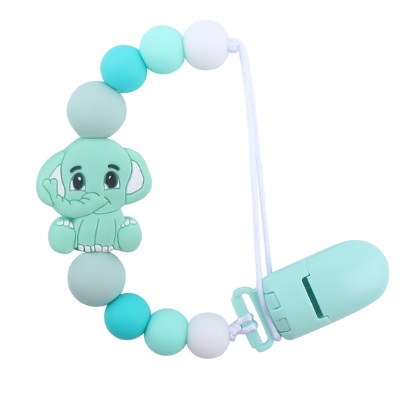 Cadena sujeta chupete para bebé. Cuentas de silicona de grado alimenticio, cadena de dentición anticaída para recién nacido. Cadena de color menta con figura de elefante. Esta cadena no se puede personalizar.