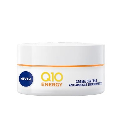 NIVEA Q10 Energy Crema de Día Antiarrugas Energizante FP 15 hidrata la piel proporcionándole un aspecto radiante durante 24 horas. Su fórmula enriquecida con 3 eficaces antioxidantes; Vitamina C, Vitamina E y Coenzima Q10 100% idéntica a la de la piel, apoya la propia capacidad de la piel para mejorar su metabolismo energético, protegiéndola de los daños que causan los radicales libres. De este modo, esta crema NIVEA con vitamina C reduce las líneas de expresión y reafirma la piel en 2 semanas, reduciendo además el aspecto apagado y los signos de fatiga del rostro.