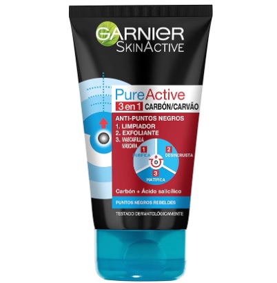 Garnier Skin Active, gel limpiador de poros 3 en 1 con carbón activo que elimina las impurezas de la piel, reduce los puntos negros y matifica el rostro. Contiene partículas exfoliantes naturales para desatascar los poros y reducir visiblemente la apariencia de las espinillas. Contribuye a una buena exfoliación facial y ayuda a combatir las imperfecciones, puntos negros y espinillas. Hipo alergénico y fórmula de PH neutro para una óptima tolerancia. Indicado para pieles grasas con tendencia acnéica. Sin parabenos.