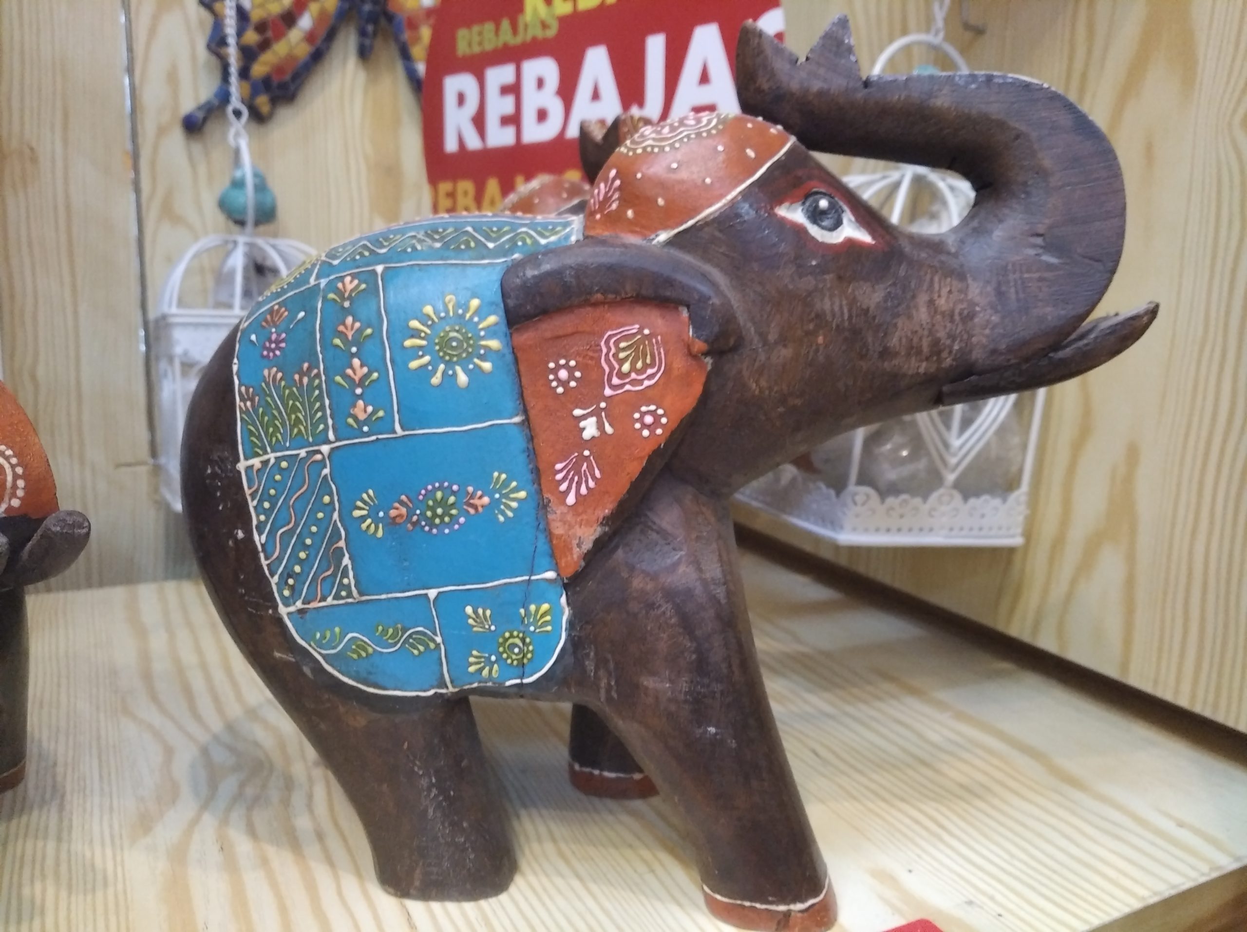 talla de madera pintada.1,5 kg.22x24x11 cm.