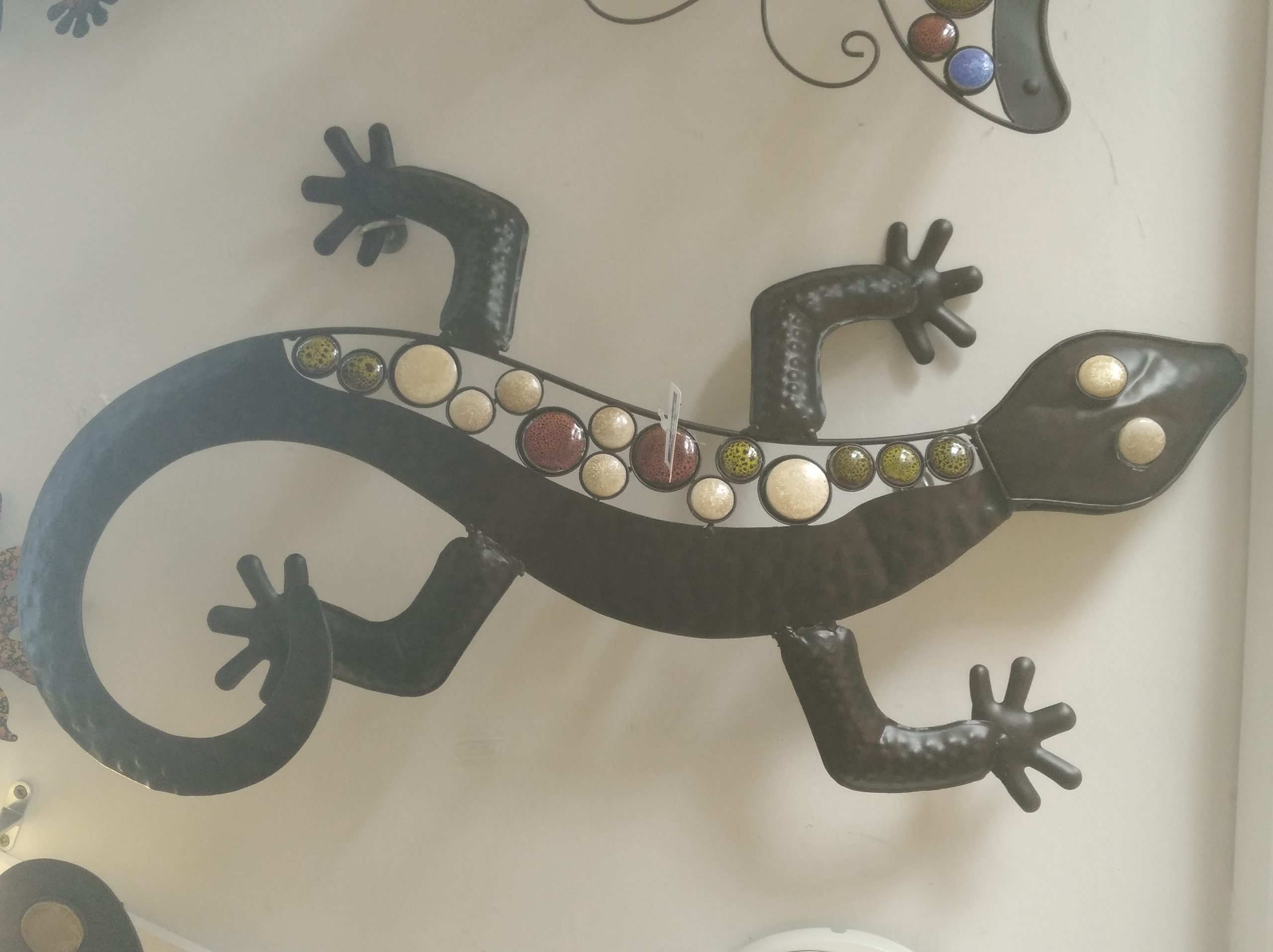 Elemento decorativo pared.Metal y cerámica.750 gr aprox.60×35 cm.