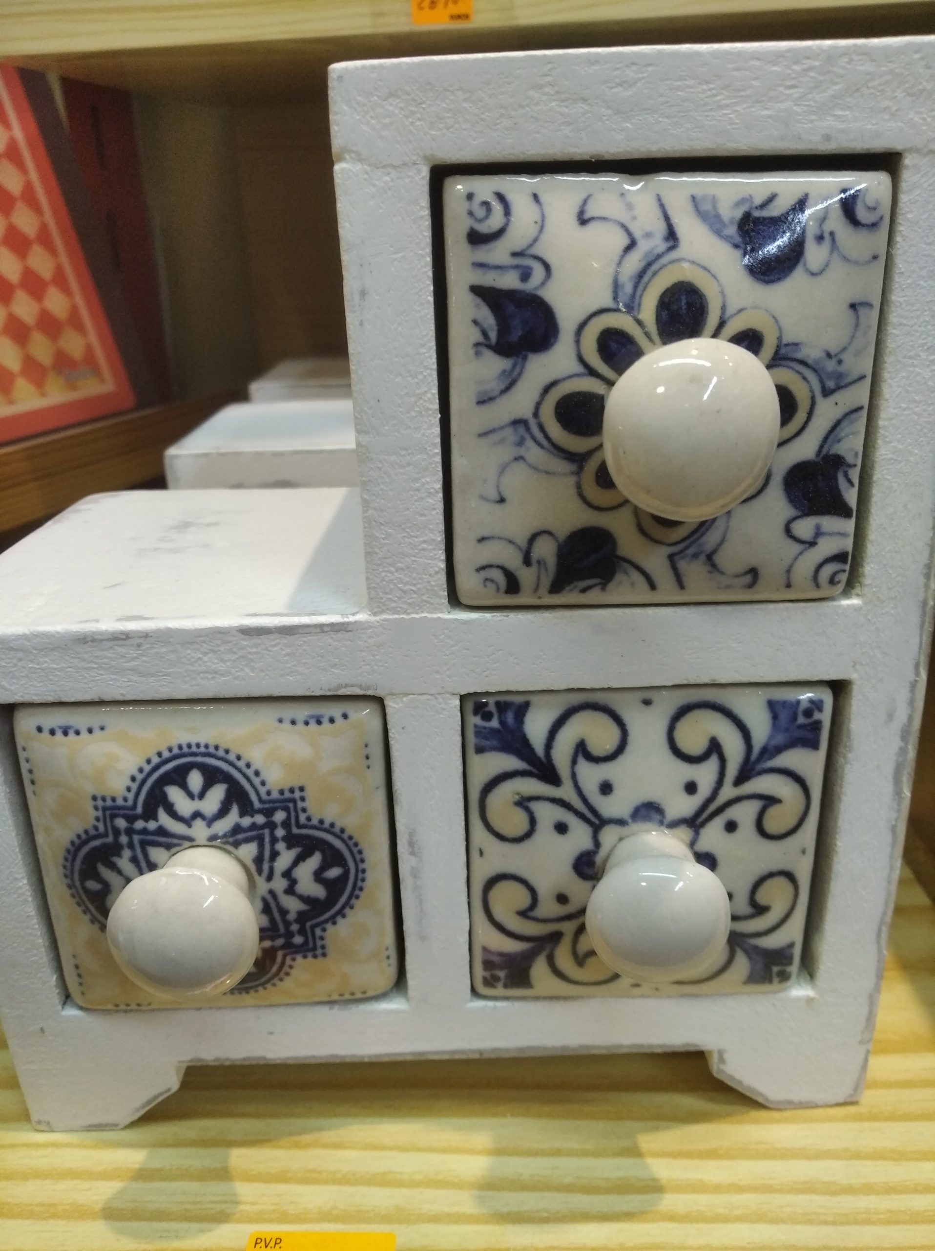 Mueble madera y cerámica.1 kg aprox.16×17 cm.