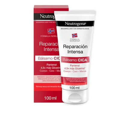 Neutrogena Reparación Intensa Bálsamo Cica, es un bálsamo ultra hidratante con fórmula concentrada, que nutre intensamente la piel. Está enriquecido con Glicerina de origen vegetal y Pantenol, activo reconocido por sus propiedades calmantes. Brinda una agradable textura envolvente que alivia, protege y mitiga la sensación de picor de forma inmediata hasta por 6 horas, actuando como una venda hidratante reparadora.