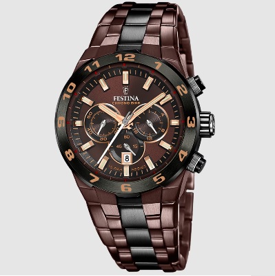 Reloj Festina Cronógrafo F20708/1 para hombre. Caja de acero inoxidable con forma circular de 44,5 mm. Color de la esfera en marrón. Bisel de acero. El cristal es mineral, movimiento cuarzo y el display analógico. Resistencia al agua hasta 100 m. Correa de acero inoxidable 316l en color marrón con cierre desplegable.