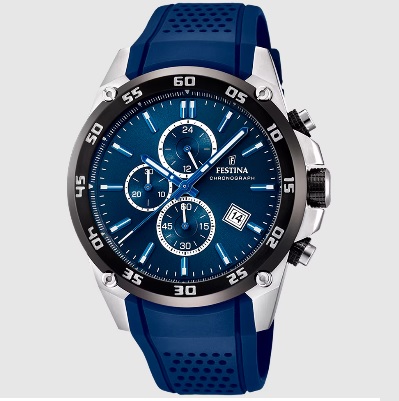 Reloj Festina F20330/2 The Originals para hombre. Caja de acero inoxidable con forma circular de 47 mm. Color de la esfera en azul. El cristal es mineral, movimiento cuarzo y el display analógico. Resistencia al agua hasta 100 m. Correa caucho en color azul con cierre de hebilla.