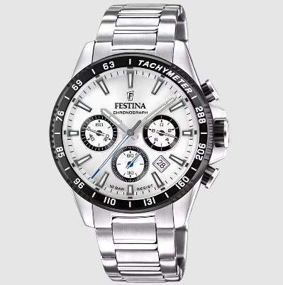 Reloj Festina F20560/1 para hombre. Caja de acero inoxidable con forma circular de 45 mm. Color de la esfera en blanco. El cristal es zafiro, movimiento cuarzo y el display analógico. Resistencia al agua hasta 100 m. Correa de acero en color plata con cierre desplegable.