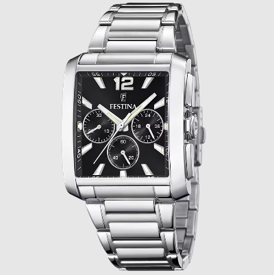 Reloj Festina para hombre. Caja rectangular de acero inoxidable de 38 mm.