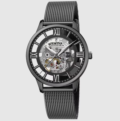 Reloj Festina F20535/1 para hombre. Caja circular de acero inoxidable de 41,5 mm. Color de la esfera en negro. El cristal de zafiro con movimiento automático y el display analógico. Resistencia al agua hasta 50 m. Correa de acero en color negro con cierre de presión.