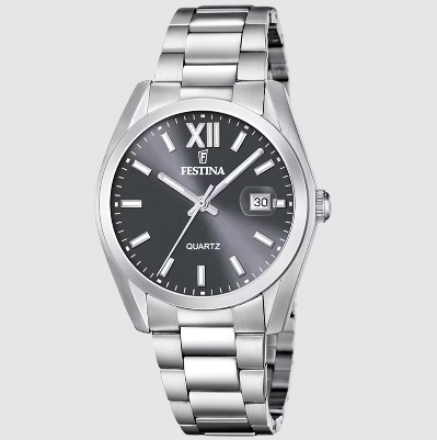 Reloj Festina  F20707/3 para hombre. Caja de acero inoxidable con forma circular de 40 mm. Color de la esfera en gris oscuro. El cristal es zafiro, movimiento cuarzo y el display analógico. Resistencia al agua hasta 50 m. Correa de acero en color plata con cierre doble pulsador.