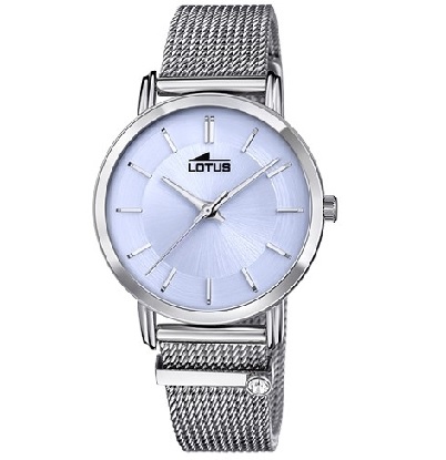 Reloj de acero con esfera en azul marca Lotus para mujer.
