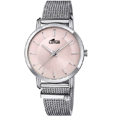 Reloj de acero con esfera en rosa marca Lotus para mujer.
