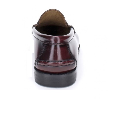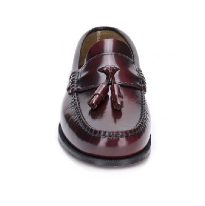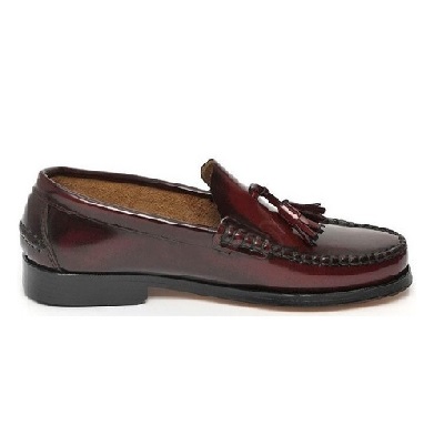 Zapato mocasín con borlas decorativas. Fabricados en piel y cosido a mano. Color burdeos.
