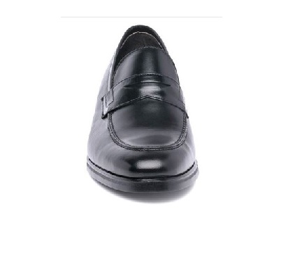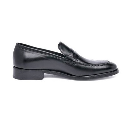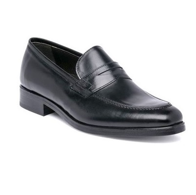 Zapato mocasín clásico de piel con antifaz. Cosido a mano. Color negro.
