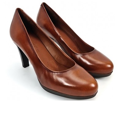 Zapatos para mujer de piel con tacón de 8,5 cm. Plantilla de gel. Color marrón.